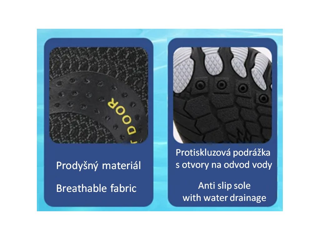 Unisex barevné rychleschnoucí, protiskluzové s prstovým desénem, boty nejen do vody, na pláž a nezpevněné ostré povrchy, outdoorové aktivity, stačí jedny boty na více činností. Když si chceš užít svůj sport nebo dovolenou bez zbytečných zranění a pořezání nohou. Máme rádi barvy - neoprenové boty do vody bývají standardně pouze černé a neoprenové ponožky se lehce propíchnou, BejkRoll boty do vody mají pevnou podrážku, kterou jen tak něco nepropíchne a díky ergonomické podrážce budeš mít v chodidlech velmi dobrý cit jak ve vodě, tak na suchu.