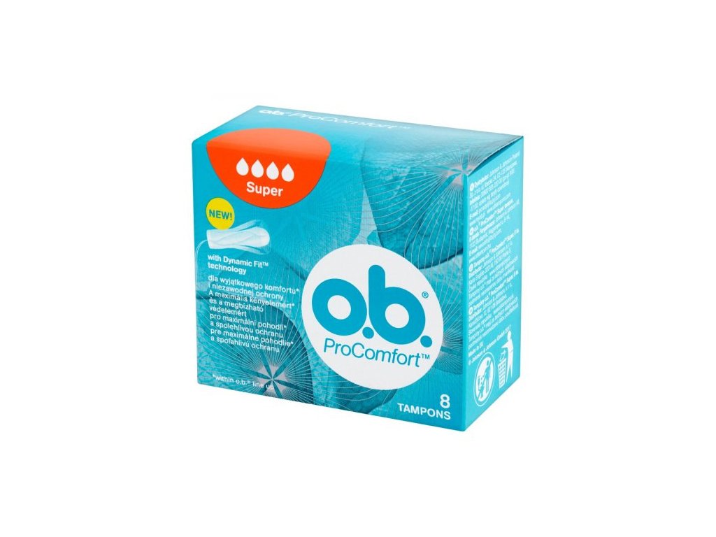 Tampony o.b.® ProComfort™ umožňují snadné zavádění a vyjímání díky jedinečnému povrchu SilkTouch™ a zajišťují spolehlivou ochranu díky unikátní technologii Dynamic Fit™ s 3D expanzí - tampon se přizpůsobí tvaru a pohybům těla a s pomocí zámkových drážek účinně odvádí tekutinu dovnitř do horní části tamponu. Tampony o.b.® ProComfort™ Super jsou vhodné pro dny se silným krvácením. Vyzkoušej tampony o.b.® ProComfort™ s povrchem SilkTouch™ pro snadné zavádění a vyjímání!
