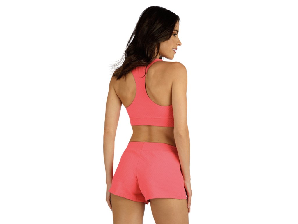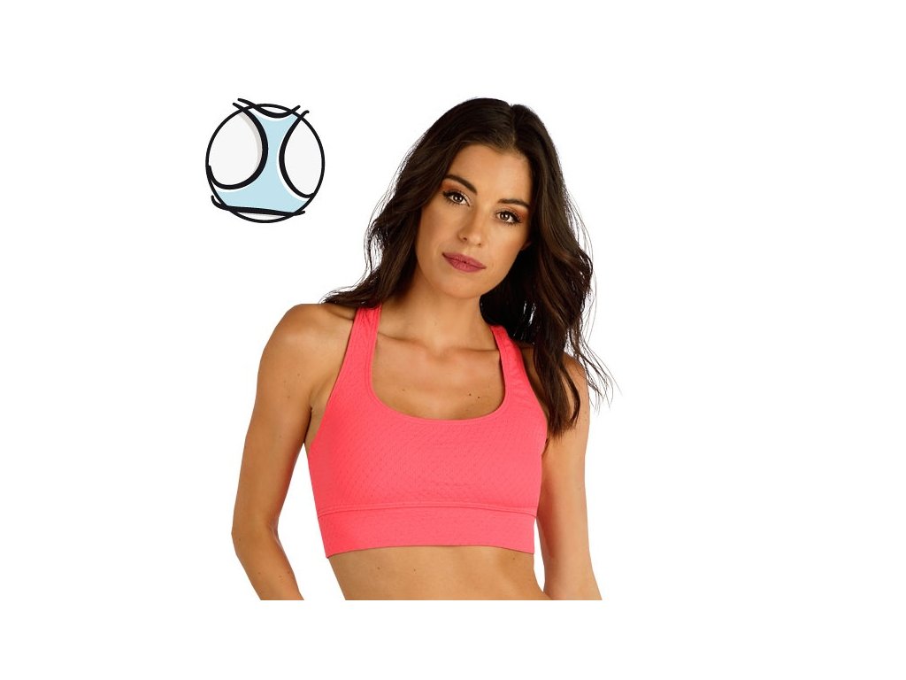 Dámský sportovní plavkový top bez výztuže v elegantní tmavě lososové barvě. Bez kostic, s pohodlnou podšívkou pro lepší komfort. Více vykrojené průramky na zádech zajišťují volnost pohybu při plavání i sportovních aktivitách. Vyroben z kvalitního materiálu 90 % polyamid a 10 % elastan, který je příjemný na těle a dobře drží tvar.
