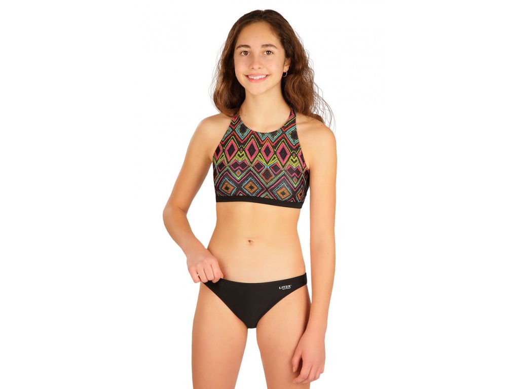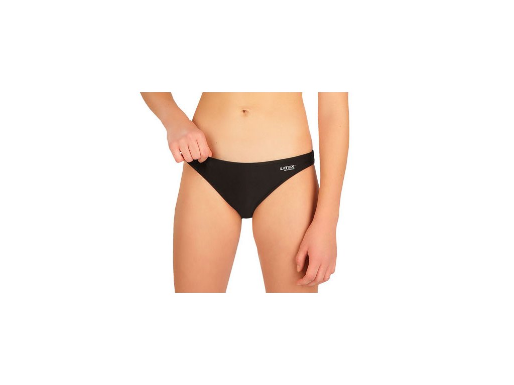 Dívčí plavecké kalhotky od české značky Litex jsou bokové a ušité z příjemného materiálu. Tmavý design se dá kombinovat s jakýmkoliv vrchním dílem.