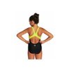 Arena G Spray Jr. Swim Pro Back One Piece Plavky dívčí vcelku v černé barvě, v přední části potištěné logem. Ramínka v kombinaci zelené a černé barvy jsou širší, vzadu do kříže. Materiál, ze kterého jsou plavky ušité, je odolný vůči chlóru, slunci, odření, je příjemný a velice dobře se nosí.