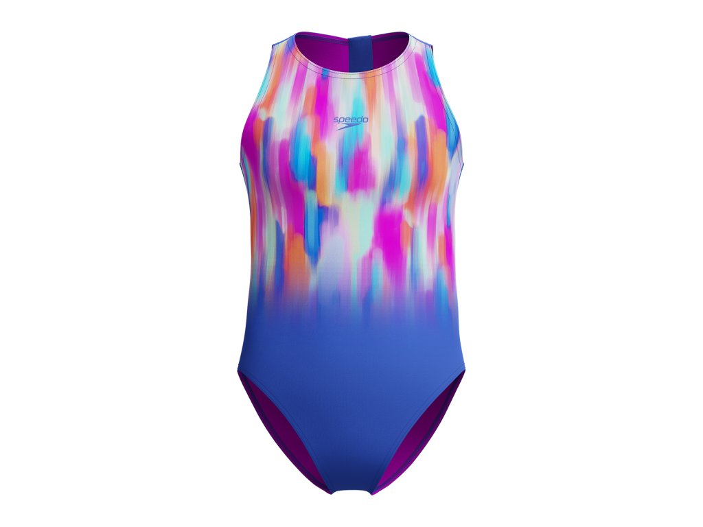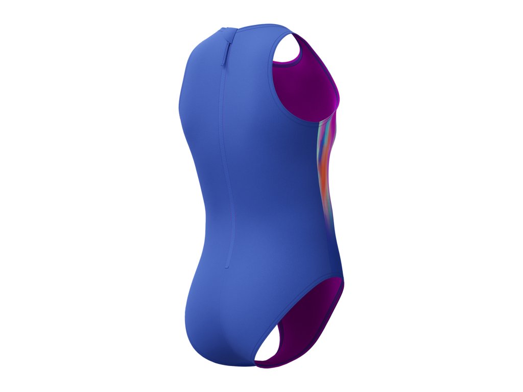 Stylový jednodílný hydrasuit pro dívky s dynamickým vzorem je ideální pro tréninky i rekreační plavání. Vysoký přední i zadní střih zajišťuje plnější pokrytí a pohodlí, zatímco zadní zip s praktickou rukojetí usnadňuje oblékání i svlékání. Vnitřní podšívka v horní části poskytuje extra podporu a jistotu při pohybu. Plavky jsou vyrobeny z odolné tkaniny EnduraBrite, která vydrží více než běžné plavkové materiály a lépe odolává chlóru.