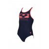 Arena G Scratchy Jr One Piece Plavky dívčí vcelku jsou sportovního střihu s širšími ramínky vzadu do kříže, která nepadají a tak se v nich slečny cítí velmi dobře. Jsou z materiálu Max Life, který je odolný vůči chlóru, slunečnímu záření a je velmi příjemný na těle. Plavky působí velmi elegantně a to právě díky svému vzoru, který je umístěn na přední části v oranžové neonové barvě. Jsou určené jak pro malé, tak i velké plavkyně.