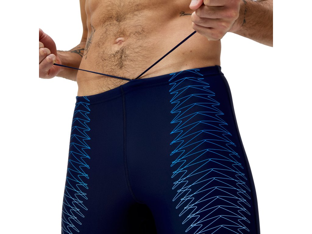 Plavky z inovativní tkaniny EnduraFlex (80 % recyklovaný nylon, 20 % elastan Creora® HighClo™) nabízejí vysokou odolnost vůči chlóru a 4směrnou elasticitu pro maximální volnost pohybu. Recyklovaný nylon pochází ze 100% spotřebitelského odpadu, čímž přispívá k ochraně životního prostředí. Stahovací šňůrka v pase zaručuje perfektní padnutí a přední podšívka z recyklovaného polyesteru zvyšuje pohodlí při nošení.