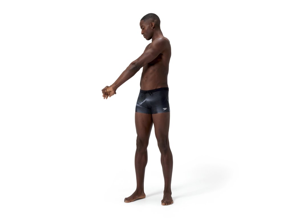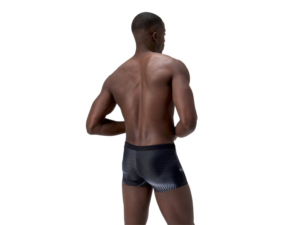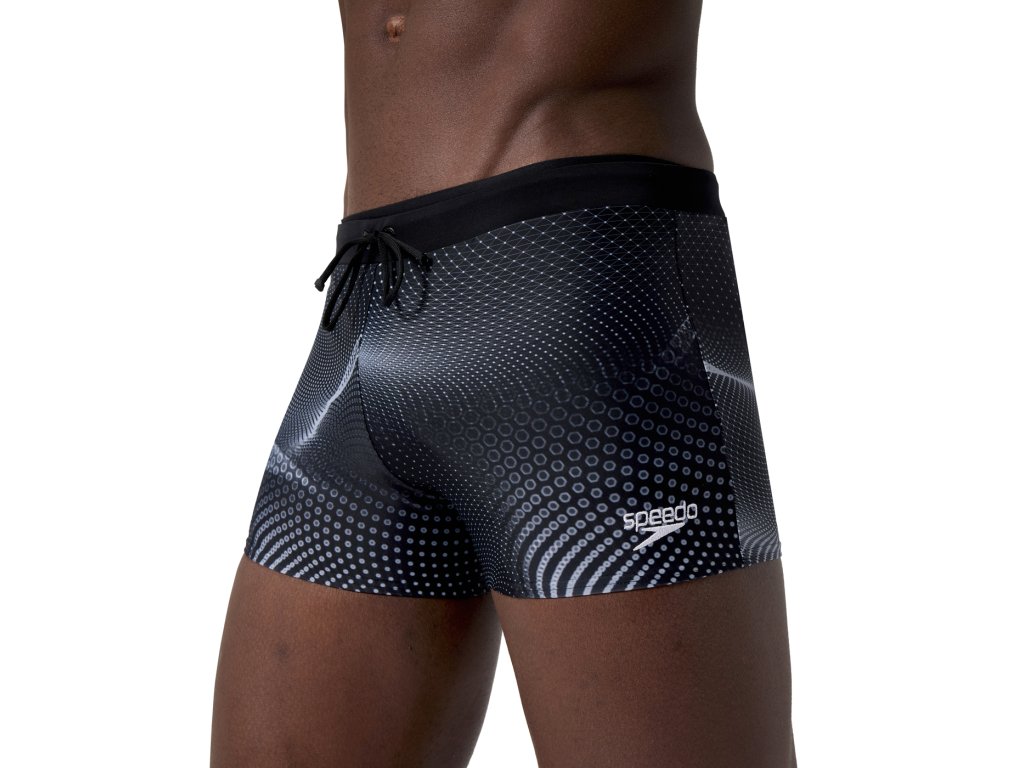 Plavky z pružné a chloru odolné tkaniny EnduraFlex (80 % recyklovaný nylon, 20 % elastan Creora® HighClo™) zajišťují dlouhou životnost a pohodlí při plavání. Vnější stahovací šňůrka v pase umožňuje bezpečné a přesné nastavení. Přední podšívka z 100 % recyklovaného polyesteru zvyšuje komfort při nošení. Styl doplňuje moderní celoplošný potisk.