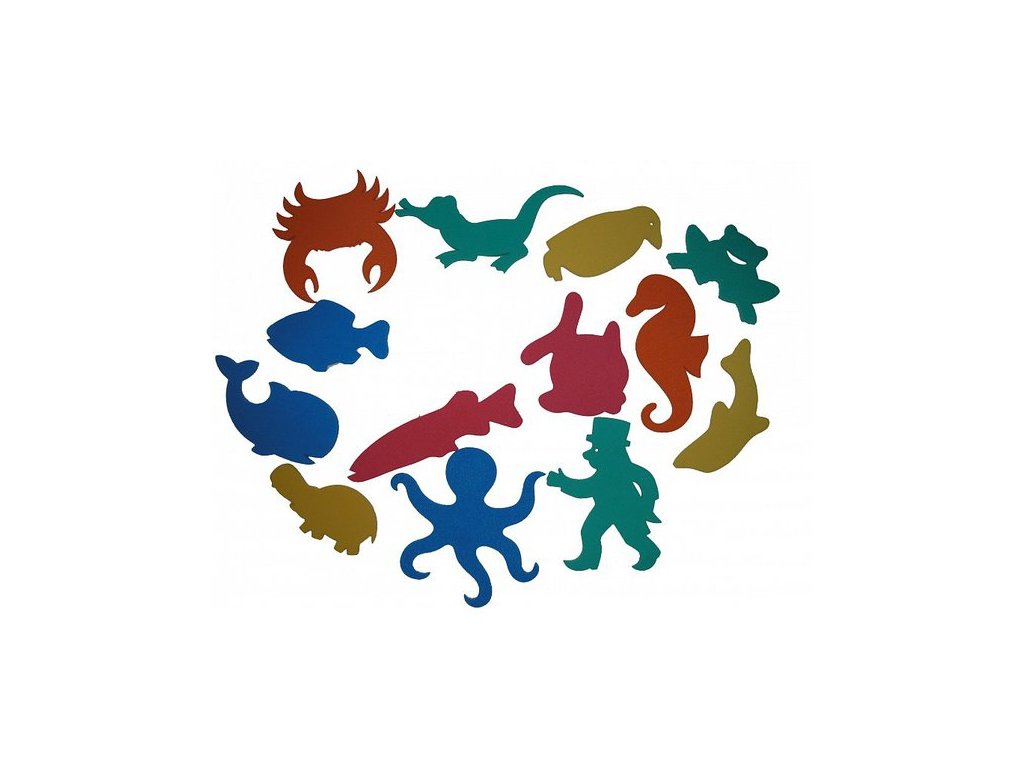 Vodní samolepky tvorů, kteří žijí ve vodě. Snadno drží na kachlících nebo jiném navlhčeném nesavém povrchu.